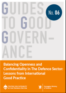 Følg lenken for å lese mer: 9062-DSS-GGG-6-eng-4kNy publikasjon i serien «Guides to Good Governance»: «Åpenhet og konfidensialitet i forsvarssektoren».